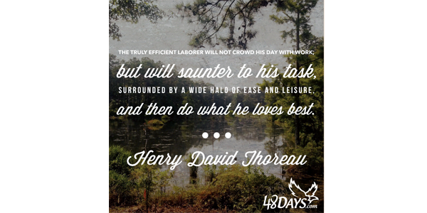 “ The truly efficient laborer will not crowd his day with work, but will saunter to his task, surrounded by a wide halo of ease and leisure, and then do what he loves best. — Thoreau