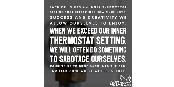 - “Each of us has an inner thermostat setting that determines how much love, success and creativity we allow ourselves to enjoy. When we exceed our inner thermostat setting, we will often do something to sabotage ourselves, causing us to drop back into the old, familiar zone where we feel secure.” – Gay Hendricks