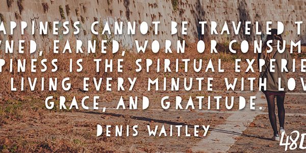 “Happiness cannot be traveled to, owned, earned, worn or consumed. Happiness is the spiritual experience of living every minute with love, grace, and gratitude.” Denis Waitley