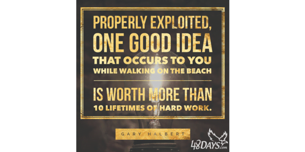 - “Properly exploited, one good idea that occurs to you when walking down the beach is worth several lifetimes of hard work” – Gary Halbert