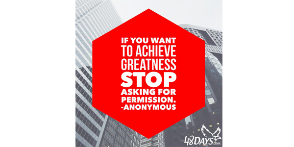 “If you want to achieve greatness stop asking for permission.” –Anonymous